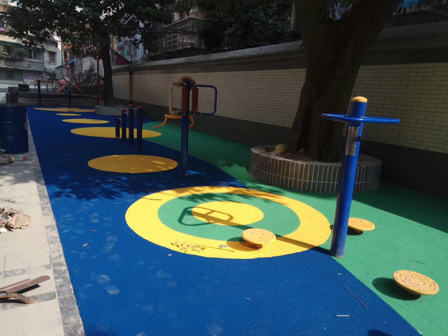 弹性安全地垫提供******的吸撞效能减少从高处阶下从而造成的伤害,长久耐用、环保,容易清洁,并且防滑、阴燃、抗静电等诸多优点。
